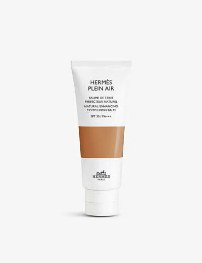 Hermès first entered the world of beauty with its now best-selling lipstick selection that quickly gained a cult following thanks to the range of versatile shades. Now, the Parisian powerhouse is extending its portfolio and introduces the Plein Air collection. Filled with everything you need to achieve a radiant complexion; the assortment includes the Complexion balm. Created by Christine Negel, the hydrating blend provides a natural glow for up to eight hours as well as SPF30 protection.| Hermès Plein Air Complexion balmApplication: Tap Hermès Plein Air natural enhancing complexion balm onto the forehead, temples, cheekbones and chin, then gently blend all over the face with the fingertips for a second skin effect. To adjust coverage, to correct occasional redness or blemishes for example, gently tap on a little extra natural enhancing complexion balm where requiredSkin type: Suitable for all skin typesSPF3040mlFor hygiene reasons, this product cannot be exchanged or refunded, unless faulty.