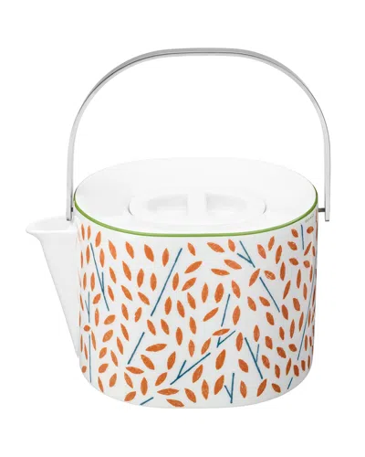 Porcelain teapot. Serves six; holds approx. 35.2 fl oz. Dishwasher safe. Made in France.