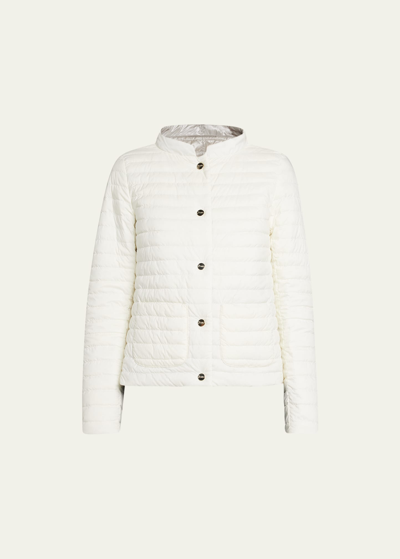 Herno ultralight nylon reversible puffer coat Band collar Snap button front Long sleeves Front patch pockets Hip length Relaxed fit Water-resistant/lightweight Fill: Down/Feather Polyamide/polyamide Made in Romania