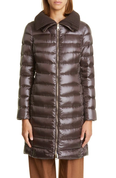 Introducing the Herno Maria Medium Down Jacket, a sleek and versatile outerwear option for the modern woman. This jacket features a stylish quilted design, stand-up collar, two front pockets, and strap details at the hem for added flair. The snap closure and lightweight construction make it easy to layer up in the colder months. Made from 100% Polyamide with a 100% Polyurethane coating, this jacket is filled with 90% goose down and 10% feathers for ultimate warmth and comfort. Please Note - Size Selections Are European. For US Conversions, Please Reference The Size Chart. Color/Pattern - Black. Approximately 32in From Shoulder To Hem. Model is 5'9 and is wearing a size 40. Measurements may vary slightly by size. Dry clean only. Imported. Elevate your winter wardrobe with the Herno Maria Medium Down Jacket.