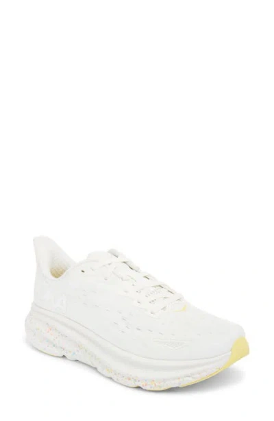 HOKA Clifton 9 Running Shoe In White / Lemonade