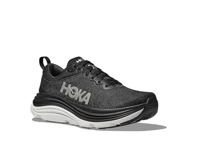 Hoka Gaviota 5 - Women's Shoes : Black/White : ; ; APMA Approved: The American Podiatric Medical Association Seal of Acceptance is awarded to products that promote good foot health and are substantiated by a committee of discerning podiatrists by wear-testing and review of the application and supporting documentation. APMA Acceptance must be applied for and is not automatically available to styles that meet its criteria. ; Make life easier than ever by wearing Hoka Gaviota 5 sneakers. The shoes feature a rounded toe and lace closure with heel pull-tabs. The textile upper and lining ensure high breathability. The shoes feature a removable OrthoLite footbed and a multi-directional lug design to let you walk with unstoppable speed. ; Hoka One One J-Frame delivers stability while maintaining a cushioned and lightweight ride that is designed to combat over-pronation and guide the foot without restricting movement. ; Best for everyday run, walking. ; Stability: Stable; designed to prevent excessive inward roll, or overpronation, without overcorrecting your gait. ; Cushion: Plush; features a higher bed of soft cushion, designed to provide a forgiving impact and ride. ; EVA midsole. ; Heel-to-Toe: 6mm ; Rubber outsole. ; Imported. Measurements: ; Weight: 9.6 oz ; Product measurements were taken using size 8, width B - Medium. Please note that measurements may vary by size. | Hoka Gaviota 5 Women's Shoes Black/White : 7 B - Medium, Textile