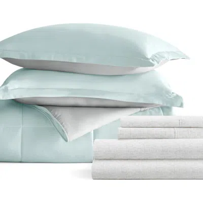 HOMESPUN 7-piece Assorted Reversible Comforter Set In Aqua/light Gray