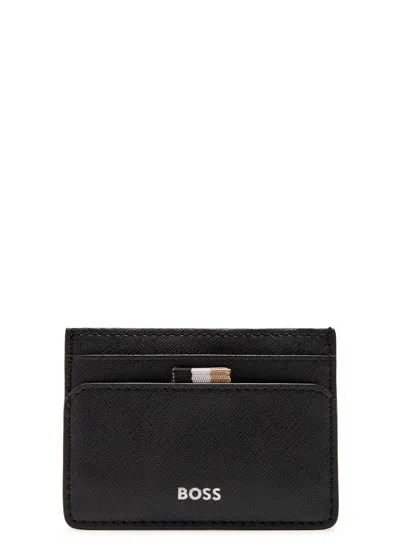 HUGO BOSS Boss Logo Saffiano Leather Card Holder In Black