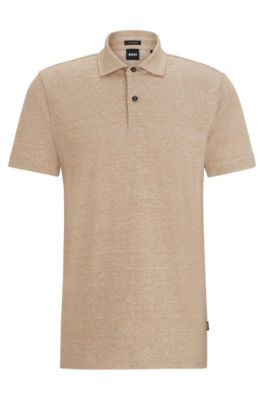 HUGO BOSS Regular-fit Polo Shirt In Cotton And Linen In Beige