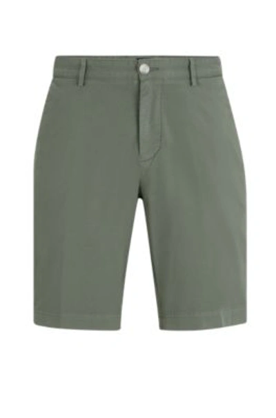 HUGO BOSS Slim-fit Shorts In Stretch-cotton Gabardine In Light Green