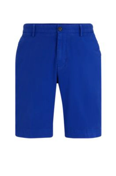 HUGO BOSS Slim-fit Shorts In Stretch-cotton Gabardine In Turquoise