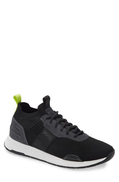 HUGO BOSS Titanium Sneaker In Black/ Grey Fabric