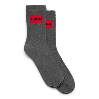 Two pairs of socks by HUGO, cut to a short length in a cotton-rich blend with stretch and detailed with red logo labels.
