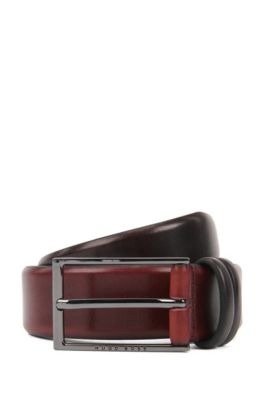 An elegant staple, this versatile, partially lined belt from BOSS Menswear is crafted from rich, vegetable-tanned leather. With a subtle two-tone effect, the design is fitted with a polished gunmetal pin buckle with subtle engraved logo detail. Add this to your core collection for an impeccable finish to any outfit.