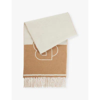 HUGO BOSS Womens Medium Beige Branded Fringed-edge Wool-blend Scarf