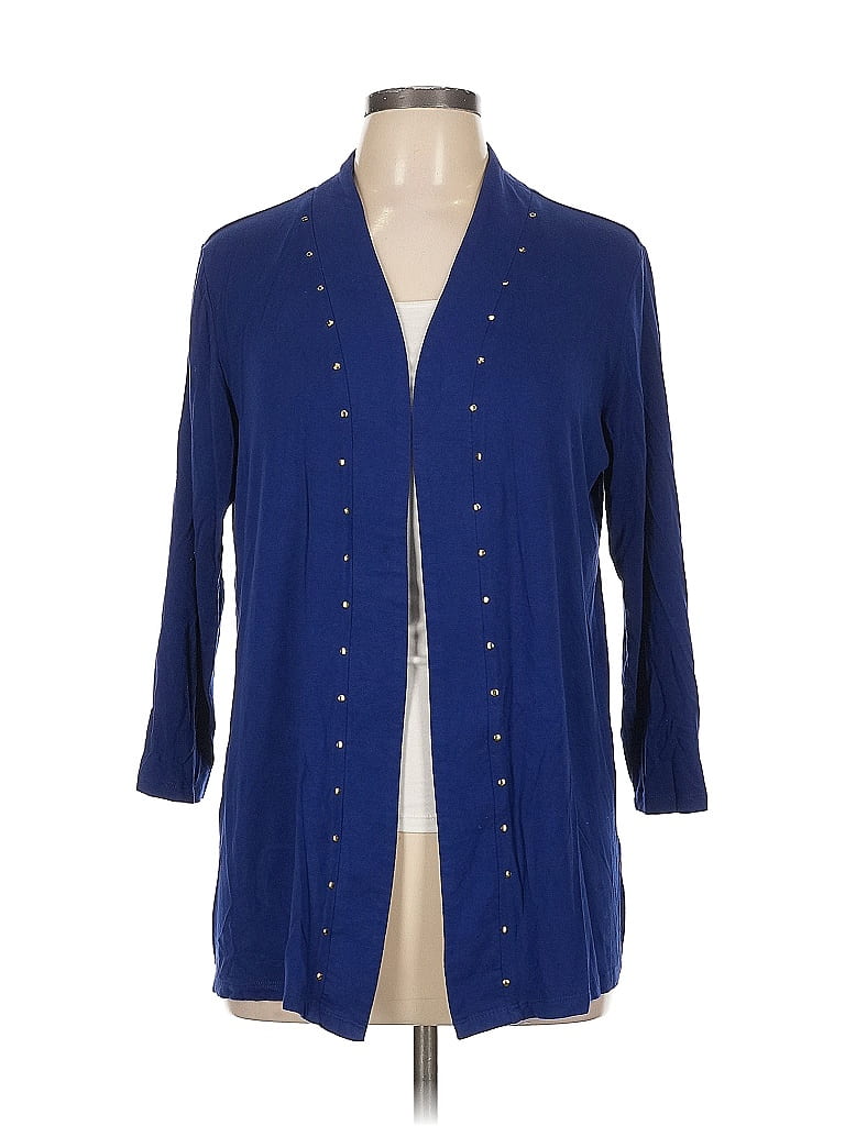 IMAN Jacket, Size: Large. Item Details: Blue, Plunge Neckline, 3/4 Sleeves, Studded, Women's Jackets & Outerwear, Rayon/Spandex