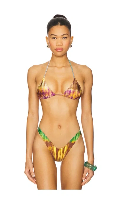 Indah Greta Printed Tiny Brazil Triangle Bikini Top in Tan. - size S (also in L, M, XS) Indah Greta Printed Tiny Brazil Triangle Bikini Top in Tan. - size S (also in L, M, XS) 86% polyamide 14% elastane. Hand wash cold. Halterneck and back self-tie closures. Unpadded bust. Midweight swimwear fabric. Item not sold as a set. INDA-WX972. GRETA-PP25. Known for its vibrant colors and innovative designs, Indah roots itself in a life of adventure. Created and produced on the island of Bali, Indonesia, Indah draws its vision each season from an international community of artists, travelers, and local beauty. Lavish prints and luxurious fabrics are an exclusive trademark of the Indah family and have given the line a bold edge in a world of the little black dress. Super-fine eyes for detail and an endless love of life and excitement truly encapsulate Indah and all that we seek to create.