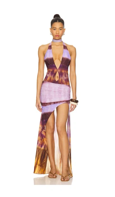 Indah Hazel Printed Mesh Maxi Gown in Purple,Orange. - size S (also in XS) Indah Hazel Printed Mesh Maxi Gown in Purple,Orange. - size S (also in XS) 86% recycled polyamide 14% elastane. Machine wash. Fully lined. Pull-on styling. Front cut-out detail. Asymmetric hem. Midweight jersey fabric. INDA-WD911. HAZEL-PP25. Known for its vibrant colors and innovative designs, Indah roots itself in a life of adventure. Created and produced on the island of Bali, Indonesia, Indah draws its vision each season from an international community of artists, travelers, and local beauty. Lavish prints and luxurious fabrics are an exclusive trademark of the Indah family and have given the line a bold edge in a world of the little black dress. Super-fine eyes for detail and an endless love of life and excitement truly encapsulate Indah and all that we seek to create.