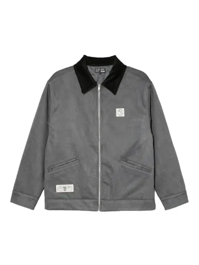 steel grey front zip fastening two side jetted pockets buttoned-cuff sleeves