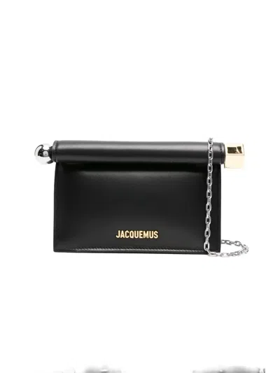 JACQUEMUS La Pochette Rond Carre Leather Clutch In Black