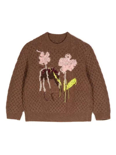 JNBY BY JNBY Kids' Floral-pattern Wool Jumper In Brown