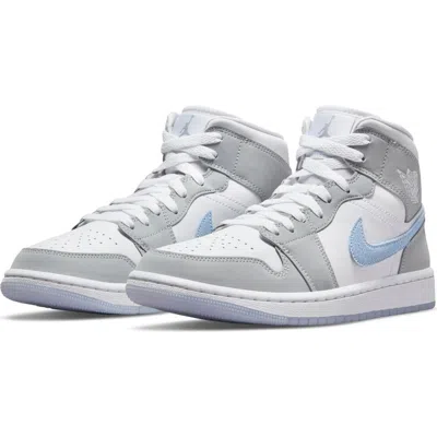 JORDAN Air 1 Mid Sneaker In White/aluminum/wolf Grey