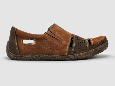 KCR GROUP Men's Vacation Leather Sandals In Dark Brown