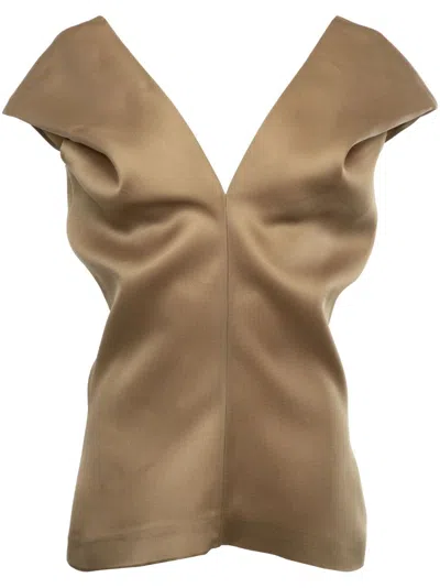 KHAITE Silk Organza Top With Back Zip In Gold