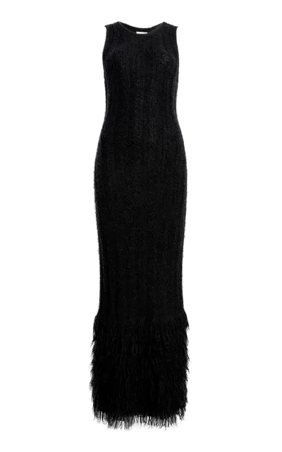 KHAITE Fiore Fringed Silk Maxi Dress In Black
