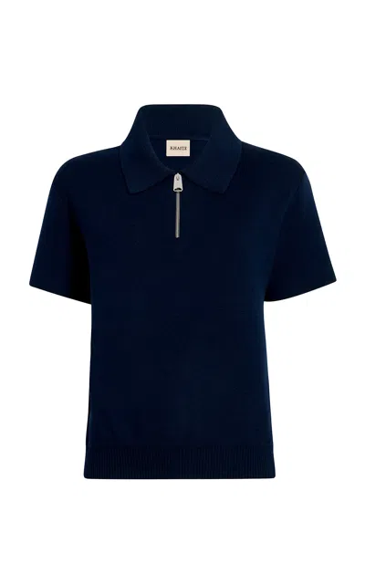 KHAITE Gulliame Zip-up Knit Wool-blend Polo Top In Blue