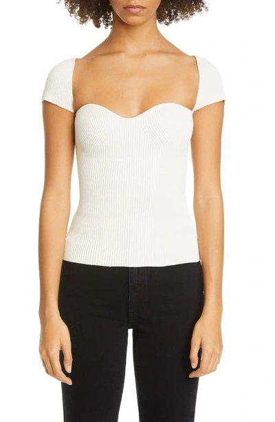 sweetheart knitted top from KHAITE featuring ivory white, sweetheart neck, short sleeves, knitted construction and ribbed detailing.