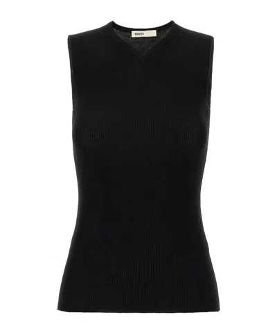 A refined sleeveless top by KHAITE, crafted from a luxurious ribbed wool blend. This top showcases a flattering V-neckline, enhancing the silhouette with soft texture and fitted design that ensures comfort. Ideal for sophisticated casual or elegant settings. Sleeveless design Ribbed wool blend Flattering V-neckline Fitted silhouette Suitable for casual or elegant occasions