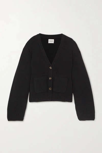 Khaite updates its best-selling 'Scarlet' cardigan in a black cashmere-blend that's so soft and really versatile. It's designed in a relaxed silhouette that's defined by ribbed trims and has knuckle-grazing sleeves and horn buttons. Style it with the label's [bra id1252887] and jeans.- For Women.