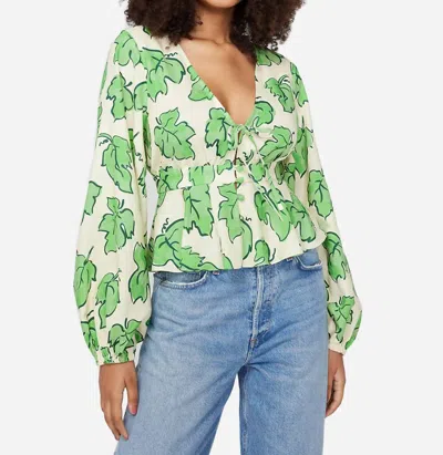 KITRI Irene Top In Green Vine Leaf Print