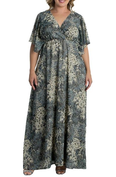 KIYONNA Floral Metallic Thread Dress In Twilight Blue