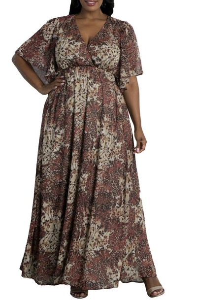 KIYONNA Floral Metallic Thread Dress In Vintage Vineyard