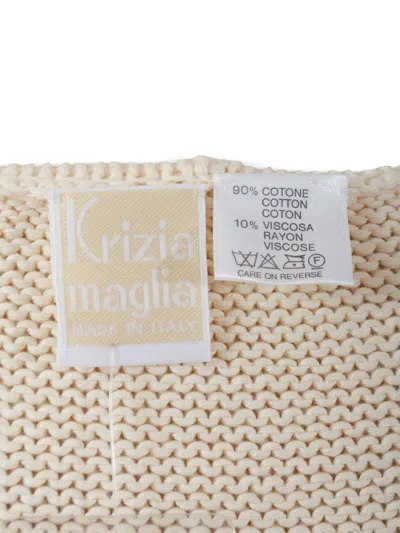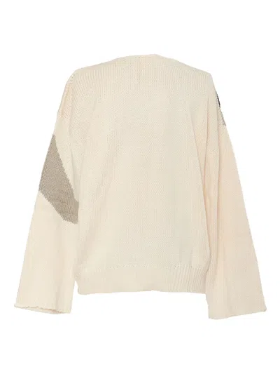 light beige cotton blend knitted construction patterned intarsia knit round neck long sleeves Condition: GOOD. This previously owned and used item is in good condition with minimal signs of use. This may include fading of material or plating and scratches.