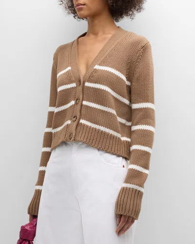 Mini Marina Striped Cardigan In Tan Cream