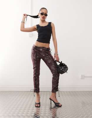 LABELRAIL X Jennifer Mcking Shimmer Faux Leather Whipstitch Pants In Black