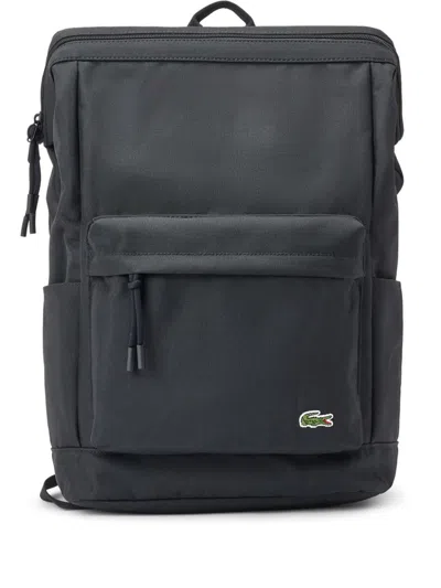 black logo patch to the front top zip fastening single top handle two adjustable shoulder straps main compartment front zip-fastening pocket