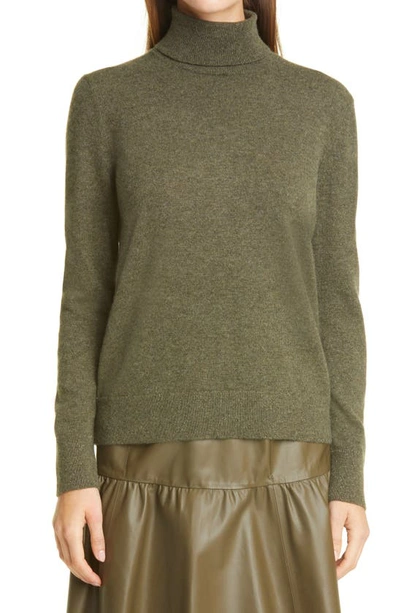 LAFAYETTE 148 Metallic Trim Cashmere Turtleneck Sweater In Loden Melange