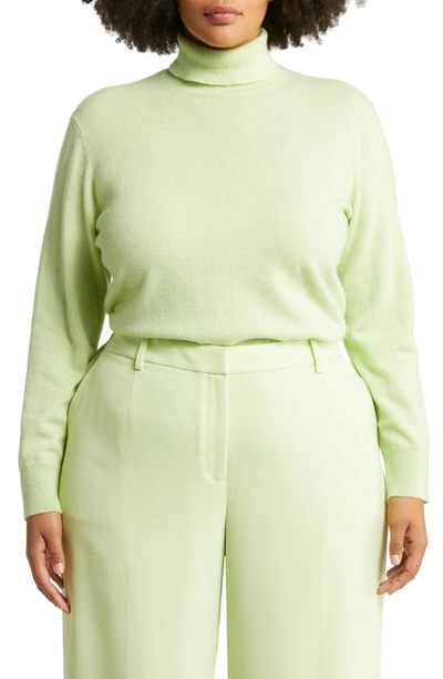 LAFAYETTE 148 Metallic Trim Kindcashmere Turtleneck Sweater In Mint
