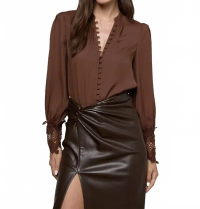 L'AGENCE Ava Lace Cuff Blouse In Hot Fudge In Brown
