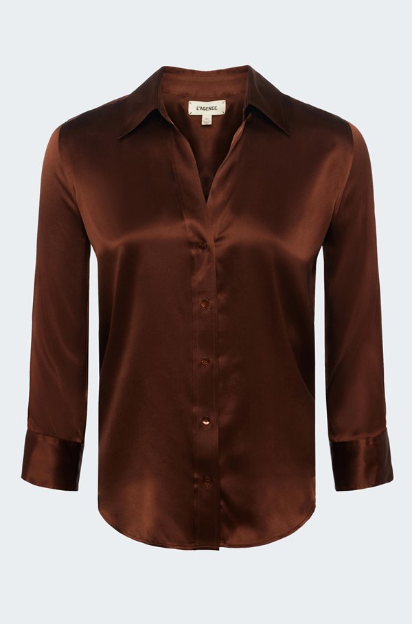 L'AGENCE Dani Silk Charmeuse Blouse In Brown