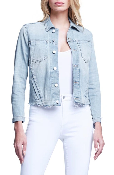 L'AGENCE Janelle Raw Cut Slim Denim Jacket In Indigo