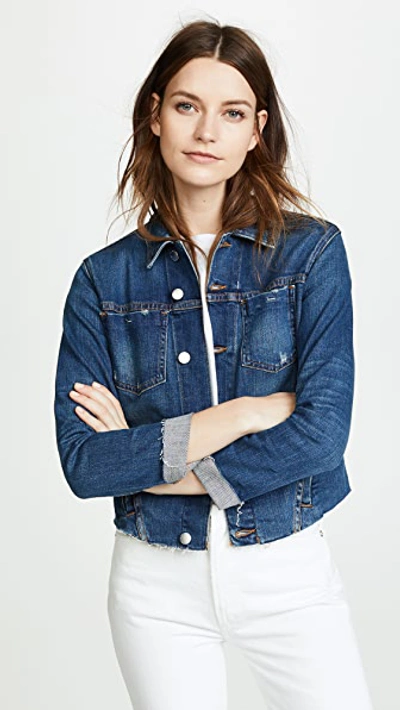 A cropped rendition of a denim jacket featuring a raw-edge hem. Point collar Long sleeves Button front Chest patch pockets Waist welt pockets Raw-edge hem Cotton/polyester/spandex Machine wash Made in USA of imported fabric SIZE & FIT Slim silhouette About 21" from shoulder to hem Model measurements: 5'10" tall Model is wearing a US size 4 ABOUT THE BRAND Founded in 2008, L'Agence marries Southern California ease with chic Parisian style. Using luxurious fabrics, the Los Angeles-based label delivers feminine collections that are both timeless and versatile. In 2015, the label launched a denim line in a range of sleek, impeccably tailored cuts. Contemporary Sportswear - Denim And Bottoms > Saks Fifth Avenue > Barneys. L'Agence. Color: Laredo. Size: XS.