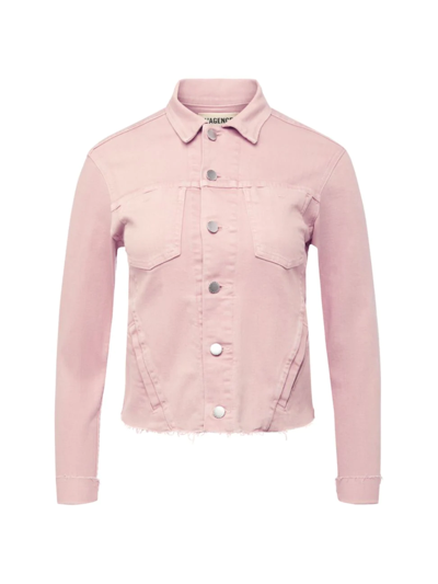 Crafted of cotton, this slim-fit jacket is tailored with a point collar and raw-edge hem. Point collar Long sleeves Barrel cuffs Buttoned front Chest patch pockets Front welt pockets 98% cotton/2% polyurethane Dry clean Made in USA SIZE & FIT About 21" from shoulder to hem Model measurements: 5'10" tall Model is wearing a US size Small ABOUT THE BRAND Founded in 2008, L'Agence marries Southern California ease with chic Parisian style. Using luxurious fabrics, the Los Angeles-based label delivers feminine collections that are both timeless and versatile. In 2015, the label launched a denim line in a range of sleek, impeccably tailored cuts. Contemporary Sportswear - Denim And Bottoms > L'agence > Saks Fifth Avenue > Barneys. L'AGENCE. Color: Dusty Pink. Size: Large.