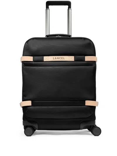 black/beige leather straps logo stamp to the front all-around zip fastening telescopic handle two top handles front zip-fastening pocket main compartment internal logo patch internal buckle-fastening strap internal zip-fastening pockets full lining