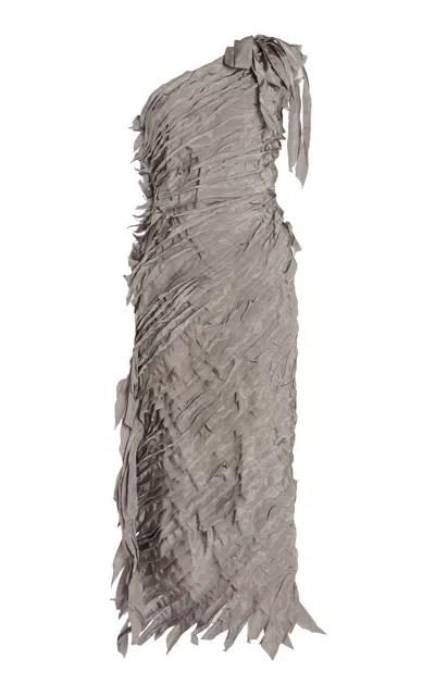 Lanvin - Pleated Satin Midi Dress - Grey - FR 48 - Only At Moda Operandi