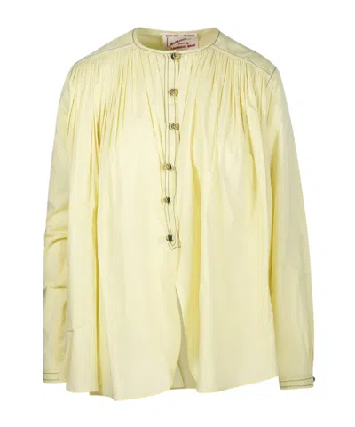 LAURENCE BRAS Pleated Button Blouse In Nude