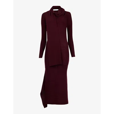 LEEM Womens Purple Cowl-neck Slim-fit Knitted Midi Dress