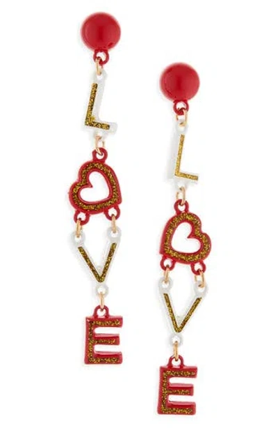 LEITH Glitter Enamel Love Drop Earrings In Red Multi- Gold