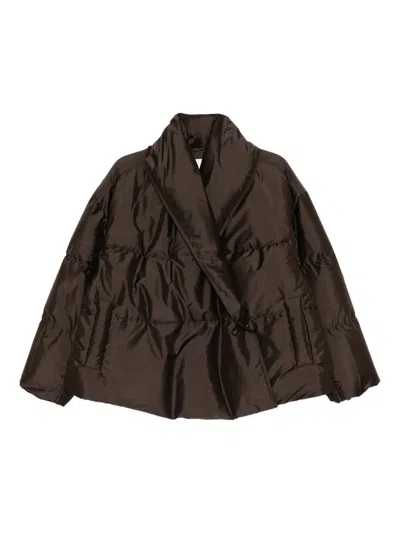 cedar brown V-neck button fastening two side welt pockets long sleeves