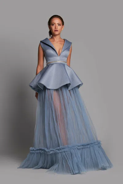 LILLY IBRAHIM Sleeveless Peplum A-line Gown In Blue